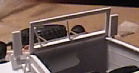 Side mirrors were cut from .020" sheet, with frames made of .020" strip, then cemented in place just ahead of the front doors. Windshield wipers were made of very small strips of .020" X .040" cut in half lenghtwise and cemented to bits of stretched sprue.